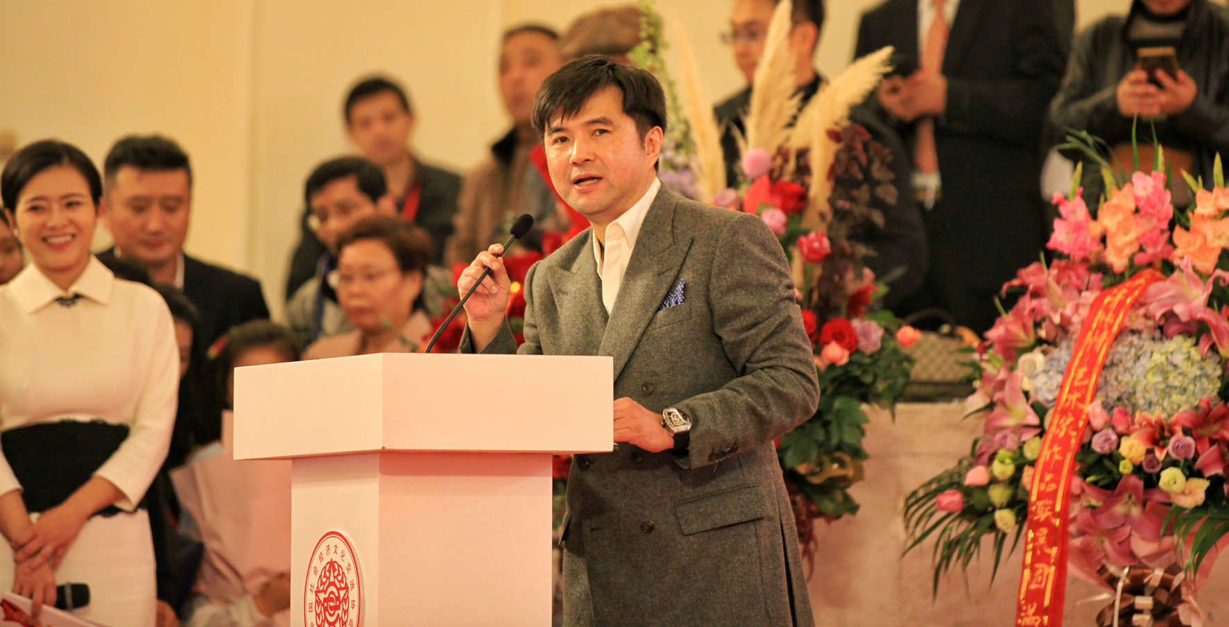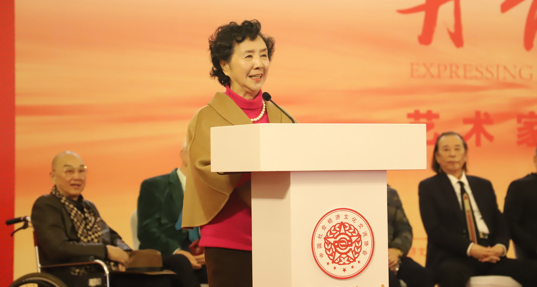 第80页-1.PNG2019 11 27 日下午,“丹青传情”艺术家作 品联展在上海展览中心正式开幕。中央宣传部原常务副 部长龚心瀚,中国作家协会原党组书记、副主席金炳华, 文化和旅游部艺术司司长诸迪,上海市委宣传部副部长 胡劲军,中国人民解放军国防大学原政委童世平,中国 文联副主席、中国音乐家协会主席叶小纲,著名舞蹈表 演艺术家、中国社会经济文化交流协会名誉会长赵青, 艺术家王铁成、陈铎、卢奇、吴欢等嘉宾以及社会各界 人士出席开幕式,由著名艺术家瞿弦和,著名主持人陈 辰共同主持。